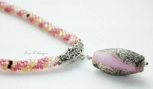 I've been adding seed beads, fibers, lampwork beads and sterling silver beads to kumihimo braids to create unique pieces of art jewelry. I'll share with you a few of my own pieces for inspiration and then give you a tutuorial so you can create your own beaded kumihimo jewelry.